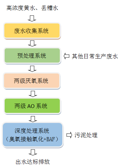02 收集的黃水和丟糟水與其他日常工業(yè)廢水按比例混合降低負荷。