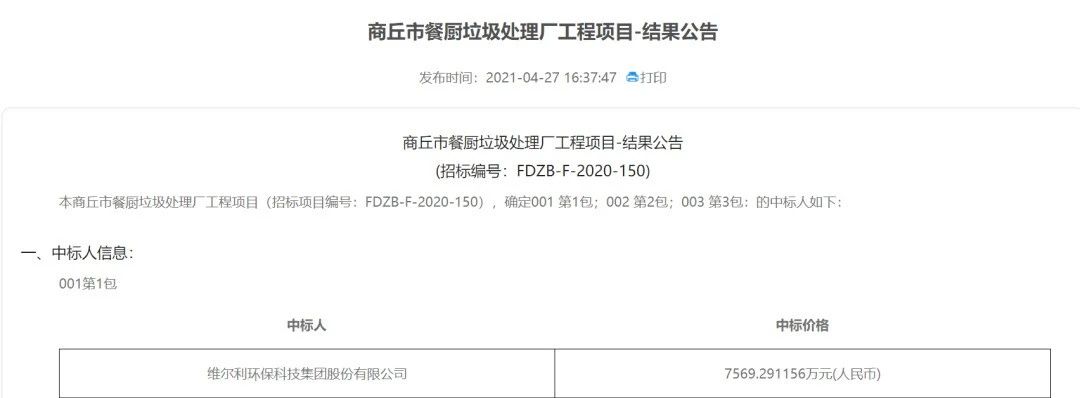 喜訊 維爾利中標(biāo)商丘市餐廚垃圾處理廠工程項(xiàng)目核心標(biāo)段